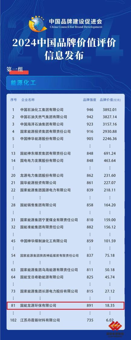½ñÄêÄÜÔ´»¯¹¤ÁìÓò102¼ÒÓÅÖÊÆóÒµÈëΧ°ñµ¥  £¬ÆäÖÐ  £¬¹ú¼ÒÄÜÔ´¼¯Íż°ÏÂÊô16¼ÒÆóÒµÈëÑ¡  £¬ÁúÔ´»·±£ÃûÁÐÆäÖÐ  £¬ÊÇϵͳÄÚΨÖðÒ»¼ÒÈý¼¶¹«Ë¾´ú±í¡£½ñÄê¹ú¼ÒÄÜÔ´¼¯ÍÅÆ·ÅƼÛÖµ»ñÆÀ2930.88ÒÚÔª  £¬½ÏÈ¥ÄêÔöÌí387.85ÒÚÔª  £¬Ôö·ù15.2%¡£¹ú¼ÒÄÜÔ´¼¯ÍÅÊǺ£ÄÚÆ·ÅƼÛÖµÁè¼ÝǧÒÚÔªµÄÁúÍ·ÆóÒµ´ú±í  £¬³ä·ÖÕÃÏÔÁ˼¯ÍŹ«Ë¾Ë¢ÐÂÉú³¤×ÛºÏʵÁ¦  £¬ÎªÖÜÈ«½¨ÉèÌìÏÂÒ»Á÷Çå½àµÍ̼ÄÜÔ´¿Æ¼¼Áì¾üÆóÒµºÍÒ»Á÷¹úÓÐ×ÊԴͶ×ʹ«Ë¾µÓÚ¨¼áʵ»ù´¡¡£